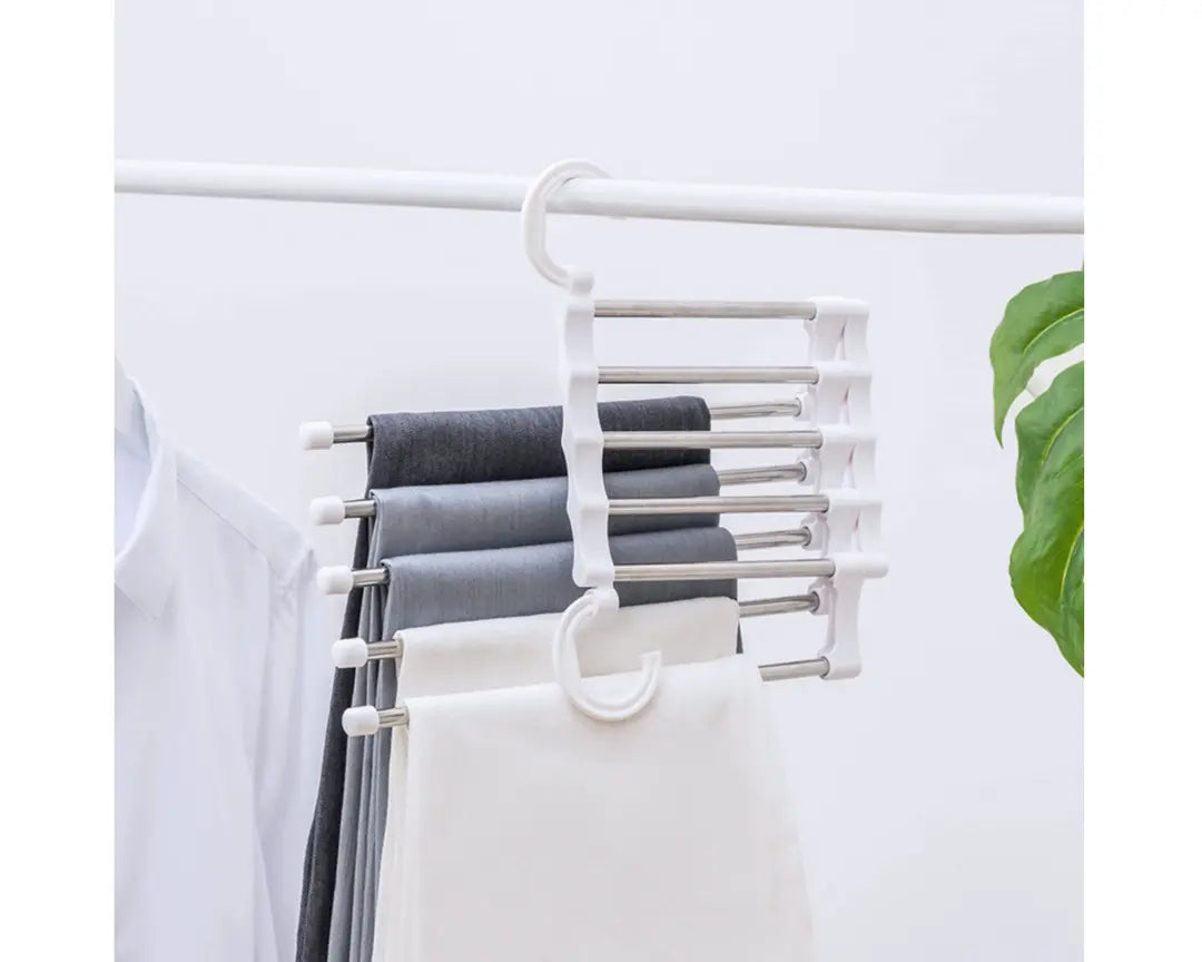 Sí. Su diseño es compacto, plegable y funciona tanto colgado vertical como horizontal. Perfecto para clósets pequeños o sobrecargados.